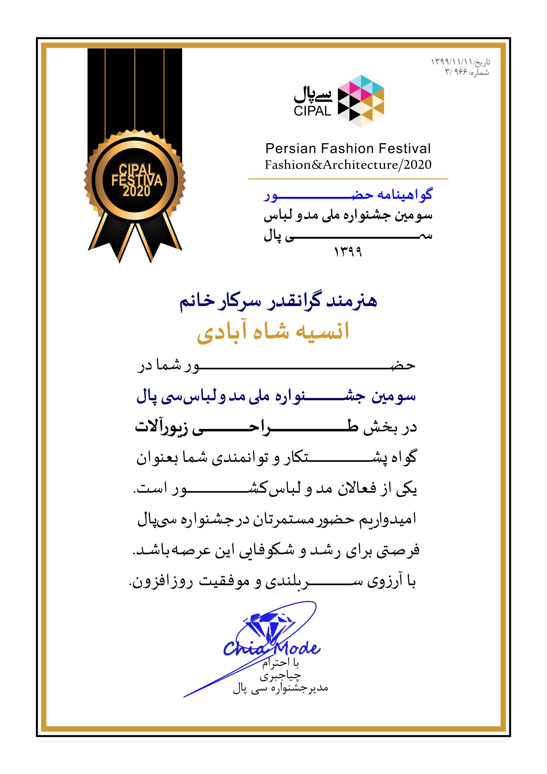 جشنواره های داخلی, گواهینامه ها Persian Fashion Festival شهریور 10, 1402 منتشر شده در انسی شاه آبادی 10 فروردین © 2023 All Rights Reserved. در شبکه های اجتماعی به اشتراک بگذارید.
